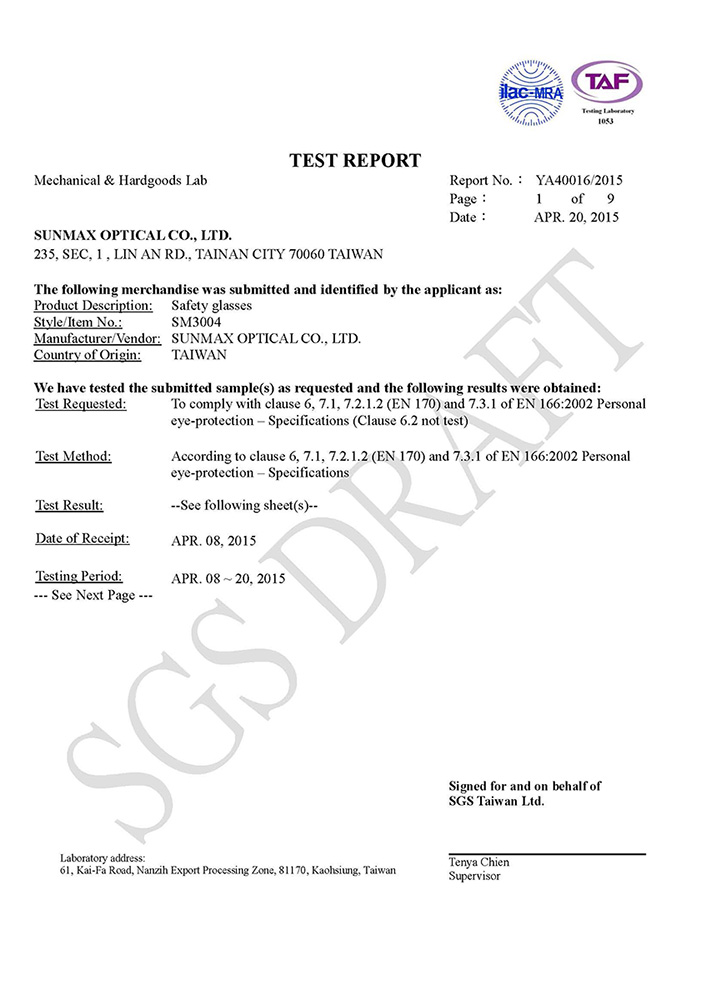 Sunmaxは世界中に質の良い商品をお届けします。そしてそれはそれぞれの国の基準を超えたものでしょう。 アメリカのスタンダード ( ANSI Z80.3 / Z87.1). ヨーロッパのスタンダード ( EN ISO 1212-1 : 2013/ 166 / 170 / 172 / EN174 & F659-10 )